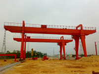 门式起重机(又称龙门起重机)是桥架通过两侧支腿支撑在地面轨道上的桥架型起重机。在结构上由门架、大车运行机构、起重小车和电气部分等组成。有的门式起重机只在一侧有支腿,另一侧支撑在厂房或栈桥上运行,称作半门式起重机。门式起重机的门架上部桥架(含主梁和端梁)、支腿、下横梁等部分构成。为了扩大起重机作业范围,主梁可以向一侧或两侧伸出支腿以外,形成悬臂。也可采用带臂架的起重小车,通过臂架的俯仰和旋转扩大起重机作业范围。